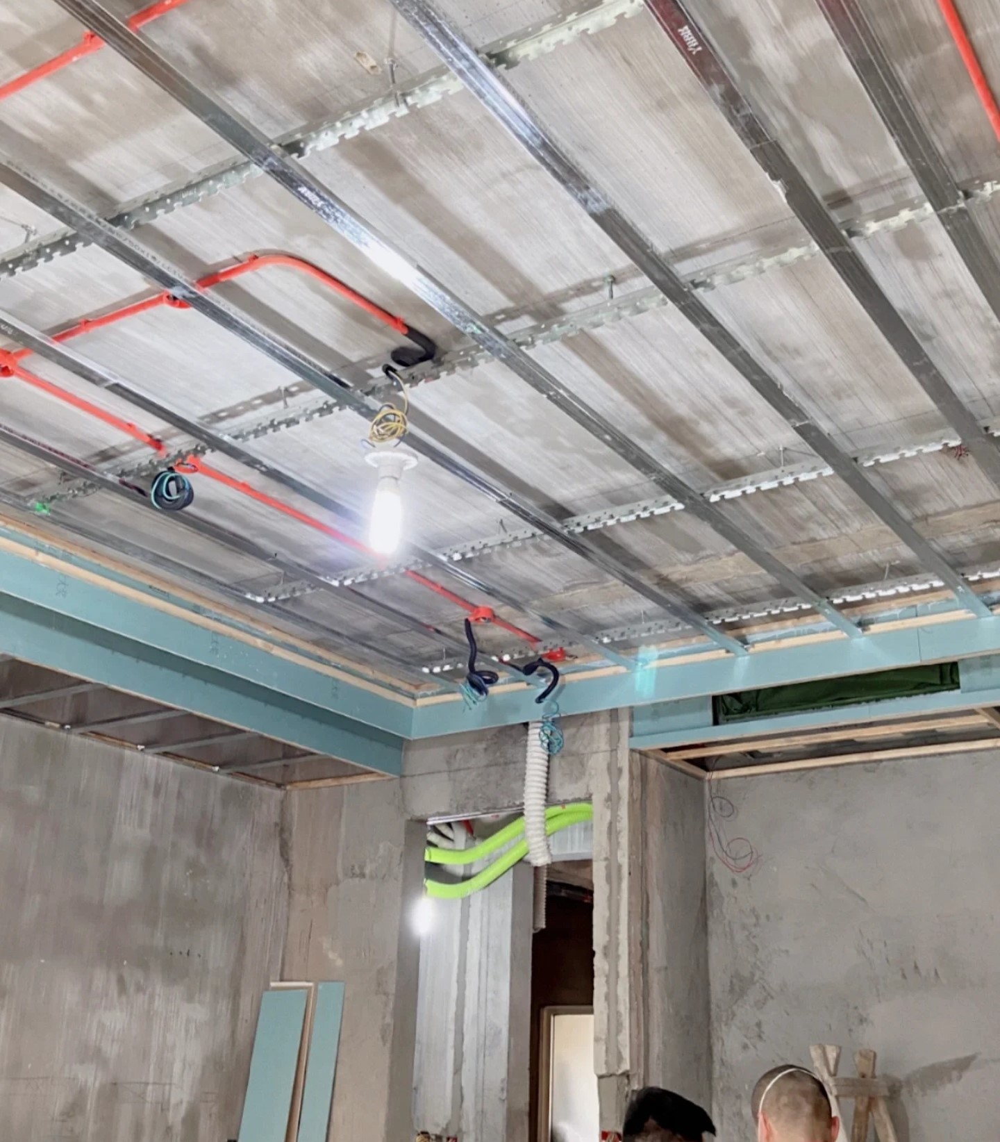 3、确定灯孔是否开完,主灯是否居中,如果是吊灯赶紧改,如果是吸顶灯,那就看能不能盖住那个位置