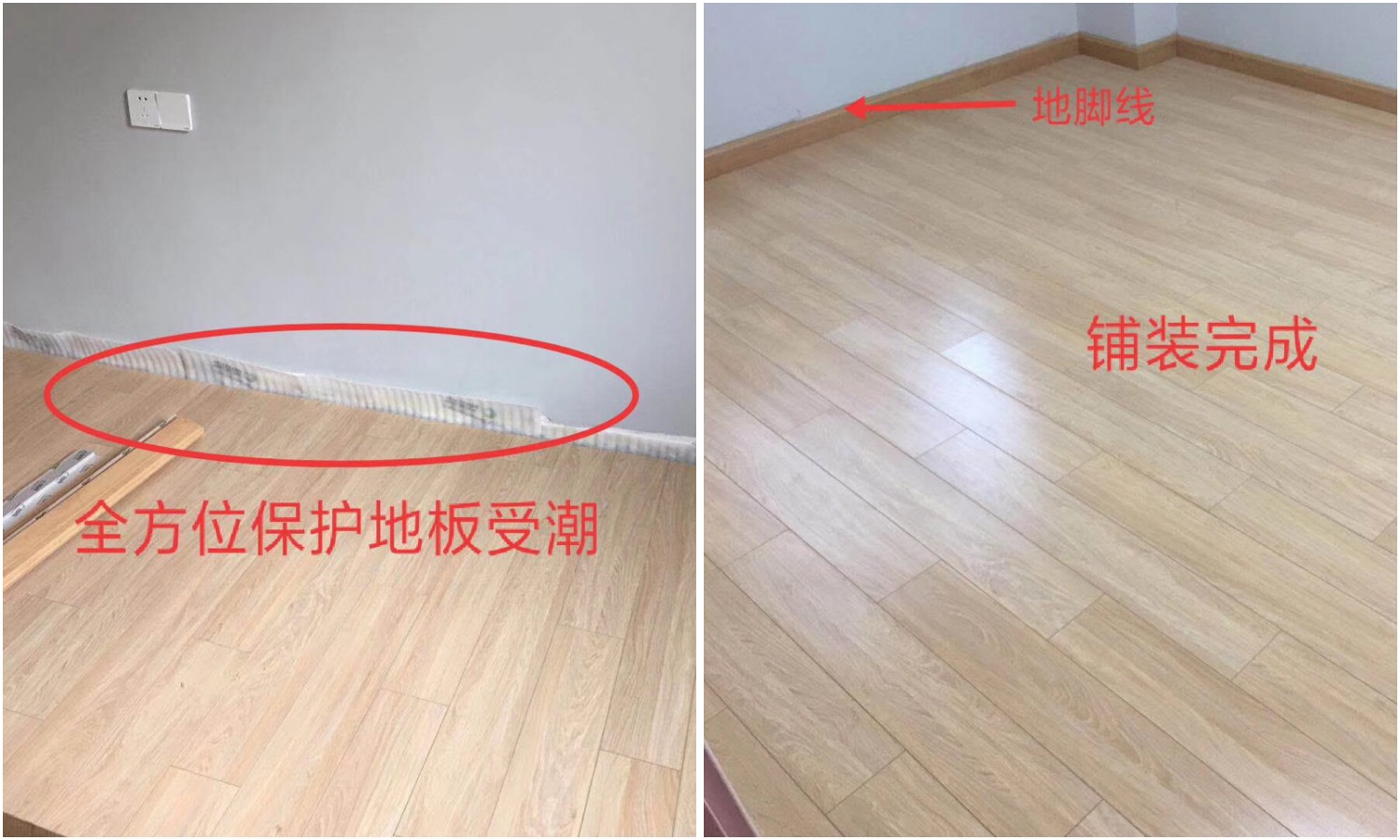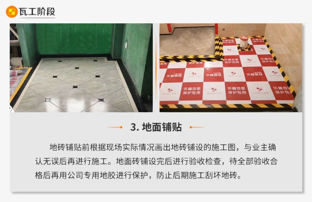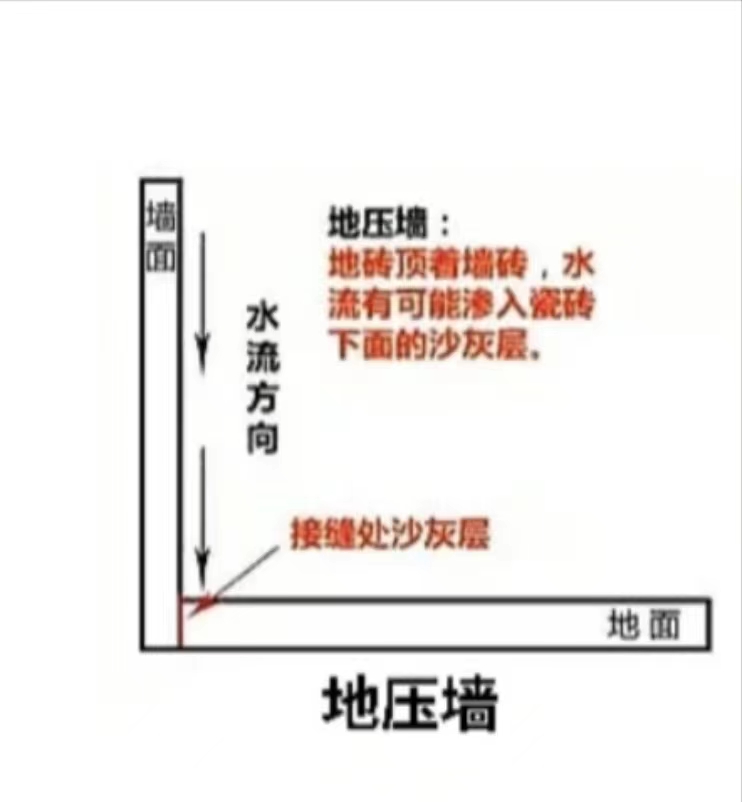 地压墙,地砖压墙砖,施工方式是从最底下往上贴瓷砖,然后再铺贴地砖